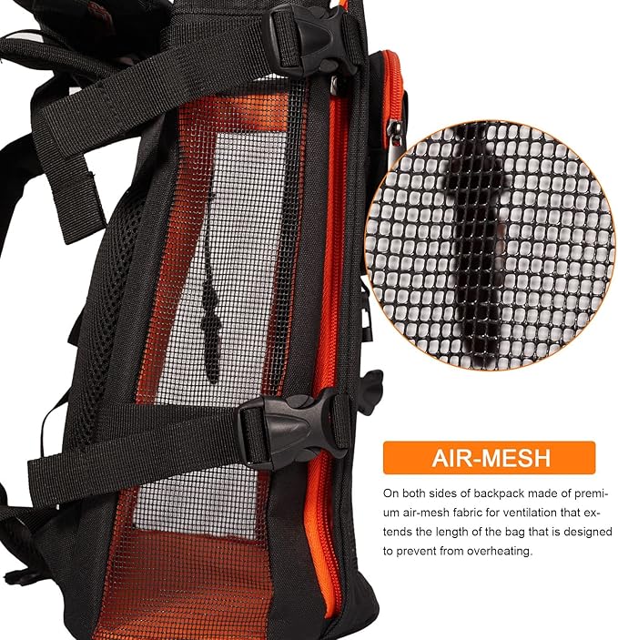 - 【Breathable Mesh Pet Travel Carrier】 Breathable mesh material can give your dog/cat a feeling cool in summer. Adjustable wide straps with elastic design in neck of pet front backpack carrier allows for sufficient flexibility and comfort.