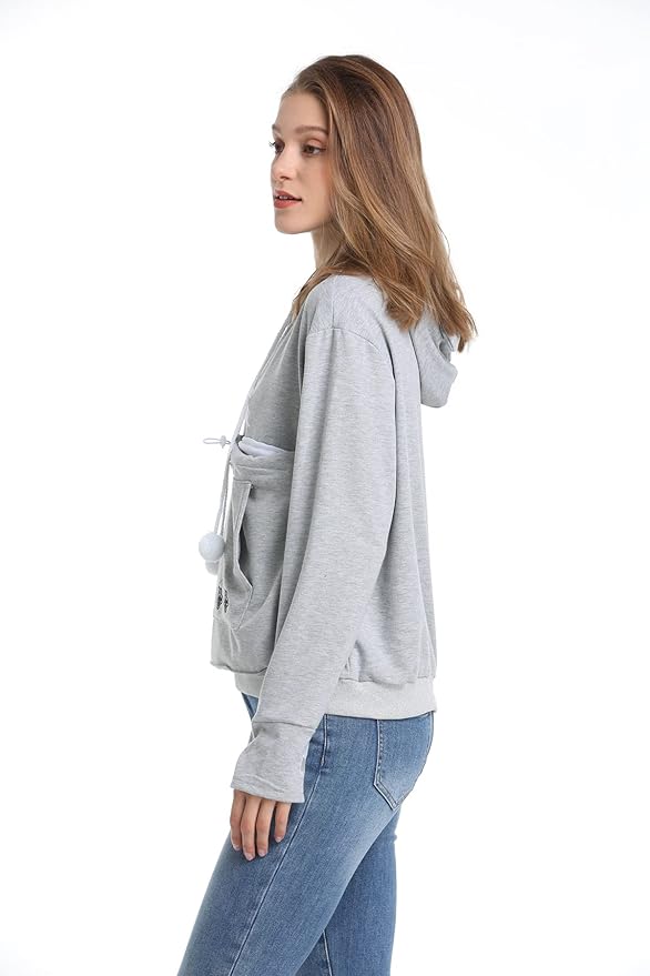- √ HANDS FREE – Pet carrier sweatshirt is not only a ideal tool for helping you to carry small pets around and socialize, but also helping to keep your hands free! Pet Pouch Sweatshirt is the ultra-comfortable fabric sweatshirt that is made for you and your cat! It features a built-in front pouch that allows you to carry your cat small dog everywhere you go.