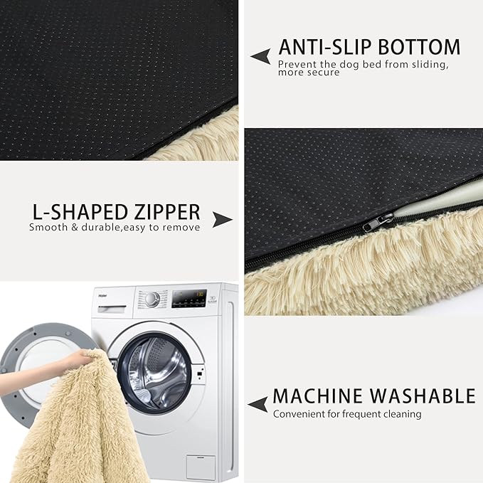 - 🐶Removable Cover & Premium Zipper - Dog bed washable removable cover equipped with high quality L-shaped zipper, which is smooth and sturdy, makes it very easy to remove. The dog bed cover is machine washable for easy care. Let your pets enjoy the pet day in a breathable, clean and hygienic dog bed.