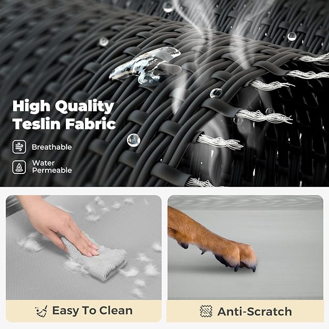 • Stay Cool Ever! Crafted of Textilene mesh fabric, the dog cot allows air to flow, keeping your pets cool while they relax in the heat. Also allow water or urine to go thru, no puddles formed. Besides, the teslin mesh features heat-resistance, sturdy, and breathability.