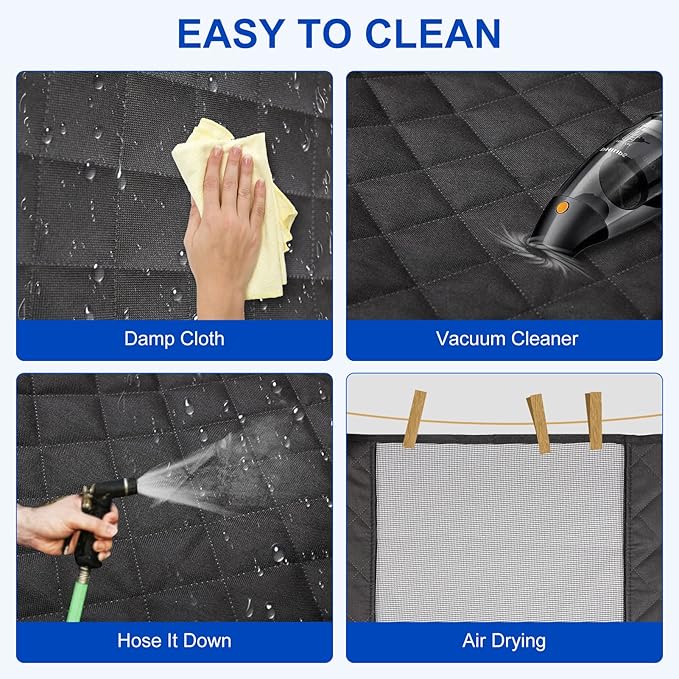- 💦100% WATERPROOF& ALL AROUND PROTECTION-- The unique new waterproof material and heat-pressing technology with no needle holes, which can achieve 100% waterproof and keep your back seats dry and clean. Two sizes (54" W x 59" L、60" W x 64" L) can meet all vehicle models, and side flaps design covers the entire back seat and provide all-round protection for your cars.