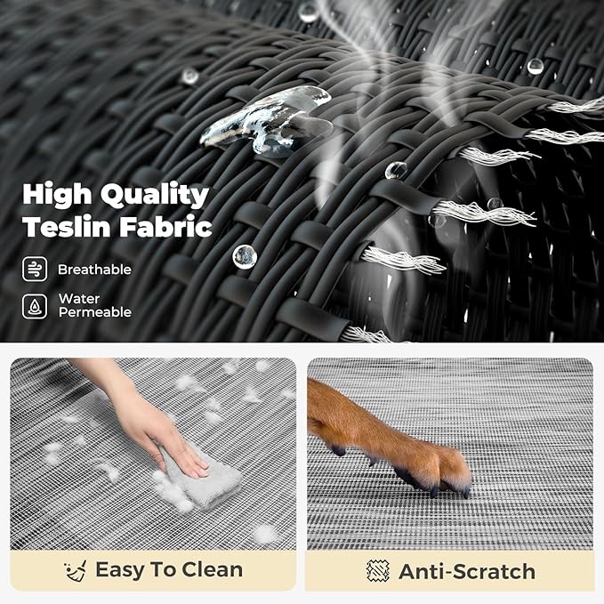 - Stay Cool Ever! Crafted of Textilene mesh fabric, the dog cot allows air to flow, keeping your pets cool while they relax in the heat. Also allow water or urine to go thru, no puddles formed. Besides, the teslin mesh features heat-resistance, sturdy, and breathability.