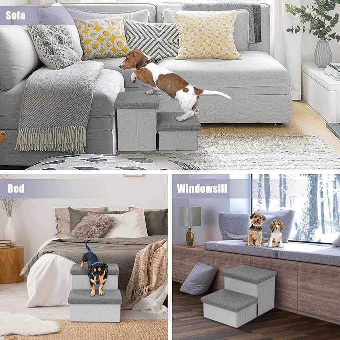 - Added Storage: Each step has a padded, removable top that opens up to reveal added storage space that's perfect for keeping pet toys, treats, blankets, extra linens, or just about anything else