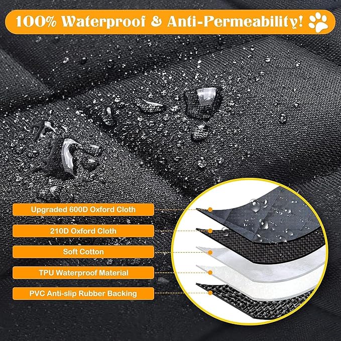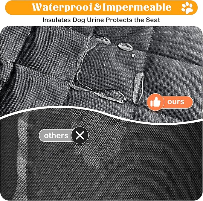 - 【100% WATERPROOF & WEARPROOF】This dog car seat cover is made of 4-layer fabrics, 100% waterproof to protect your seat from mud, liquid, hair, or any mess, durable to avoid scratching your leather seats, and comfortable for long road trip. No more endless sweep.