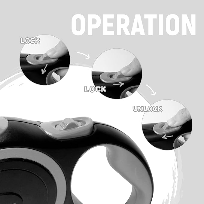 - You can press the button to lock the leash, then press the button back to easily put your dog back. Convenient for telescopic adjustment, storage and traction