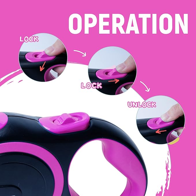 - You can press the button to lock the leash, then press the button back to easily put your dog back. Convenient for telescopic adjustment, storage and traction