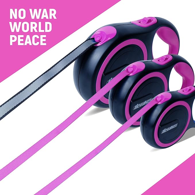 - The pet supplies adopts non-toxic plastic shell, durable nylon rope, metal lock, bending smooth, no noise, not easy to jam. Tangle-free 360 degree tape movement. Great products for dogs