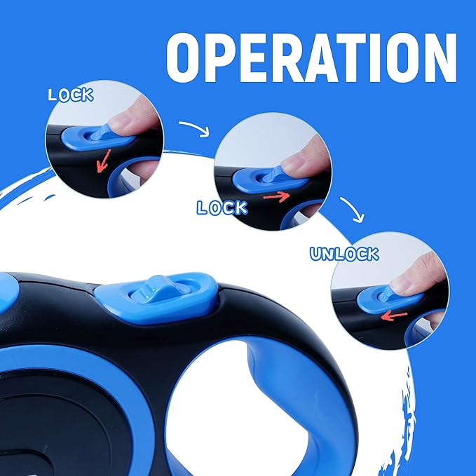 - You can press the button to lock the leash, then press the button back to easily put your dog back. Convenient for telescopic adjustment, storage and traction