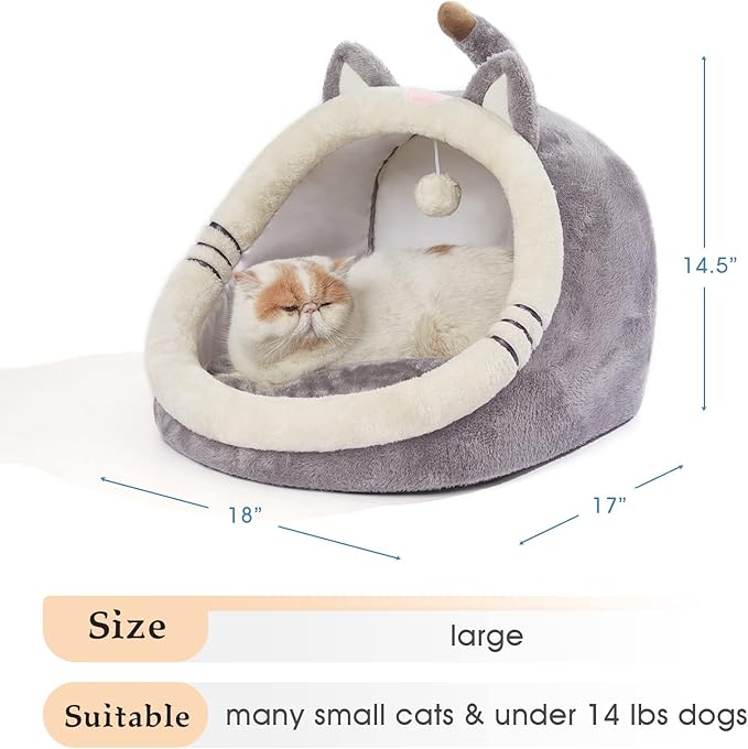 - 【Size & Fits】Bed Size-L(18"x17"x14.5"), Suitable for many cats.