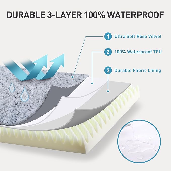 - Ultra-soft & Waterproof - The sleeping area of the dog crate bed is made of 3-layer fabric. The outer rose velvet surface is soft and skin-friendly. The middle TPU waterproof layer prevents liquid from penetrating, so that the filling won't get wet. The inner knit fabric lining is durable enough for long time use.