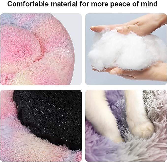 - Cat beds or dog beds are donut design, The raised edges create comfortable sense of security, while providing head and neck support to help kitten or puppy calm down faster, Get a more comfortable and stable sleep