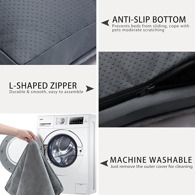 - Removable Cover: Washable dog bed comes with a premium L-shaped zipper, it is smooth and durable, making it easy to remove, and it is machine washable for quick cleaning and easy care. Durable cover keep the inner padded fiber from accidental damage.