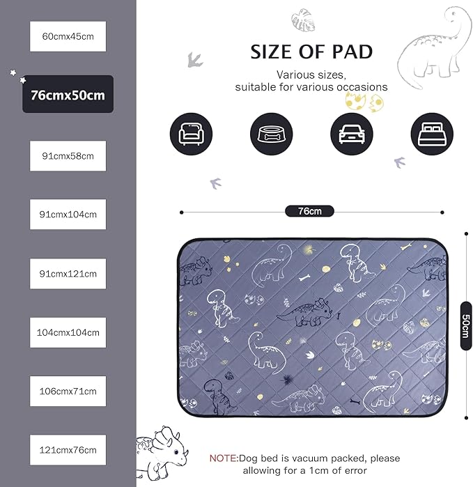 - 【Fashion and Non-slip】 Our dinosaur design makes this reusable pee pads for dogs very cute and makes your room more stylish. And the soft and comfortable puppy pee pads with anti-skid bottom can achieve a certain fixed effect.The bottom is waterproof and you can place it anywhere you want.