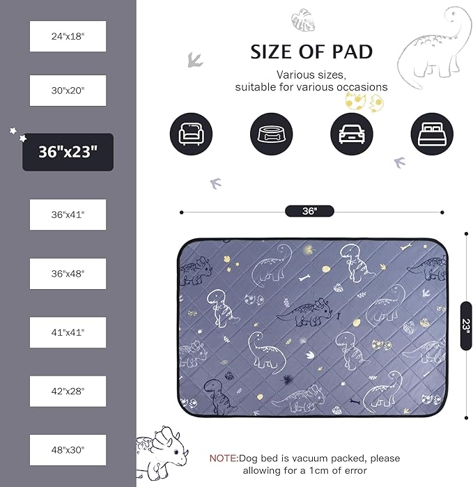 - 【Fashion and Non-slip】 Our dinosaur design makes this reusable pee pads for dogs very cute and makes your room more stylish. And the soft and comfortable puppy pee pads with anti-skid bottom can achieve a certain fixed effect.The bottom is waterproof and you can place it anywhere you want.