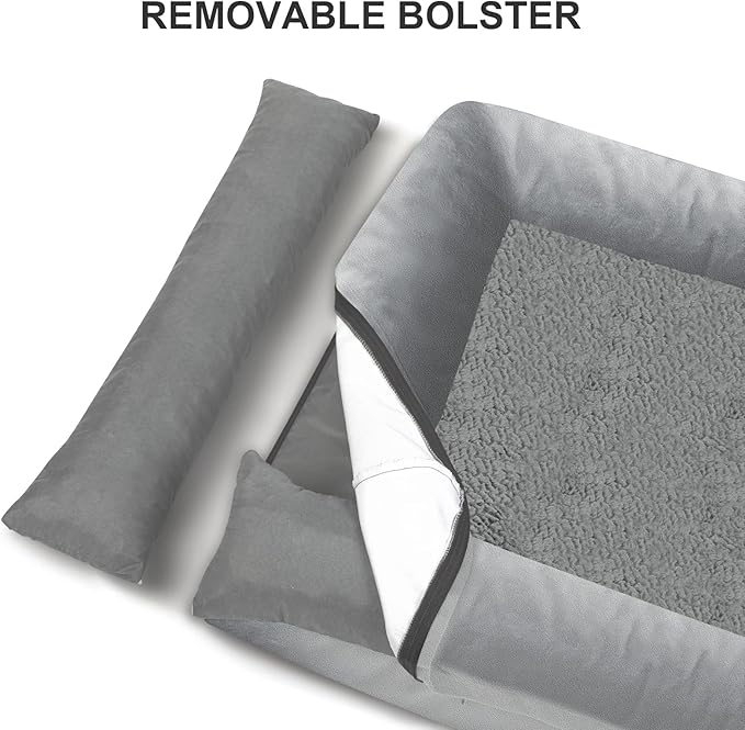 - All-Around Bolster Design: Our waterproof dog bed features a full bolster design that surrounds the entire perimeter of the large dog bed; This provides your furry friend with a cozy and secure space to rest their head, no matter where they are in the bed