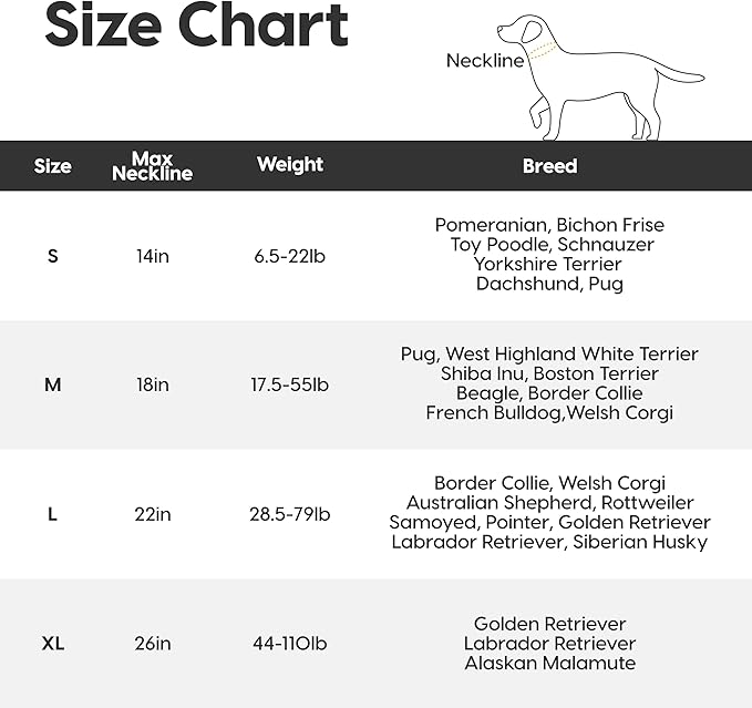 - Find the perfect fit for your dog: The WOOFO dog comfort collar has 5 colors and 4 sizes to choose from. Simply refer to our size chart and discover how to measure your dog for the right fit.