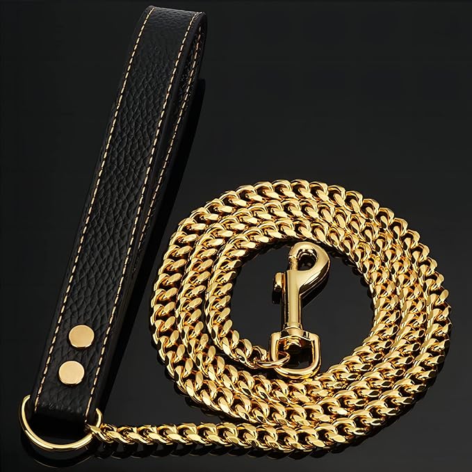 - 【Strong Dog Leash】Made of 316 stainless steel, 18k gold plated gold dog leash.The dog chain leash is fully welded and can withstand a weight of up to 390 pounds. The metal dog leash is high hardness, durable, strong, long service life , and never rust.