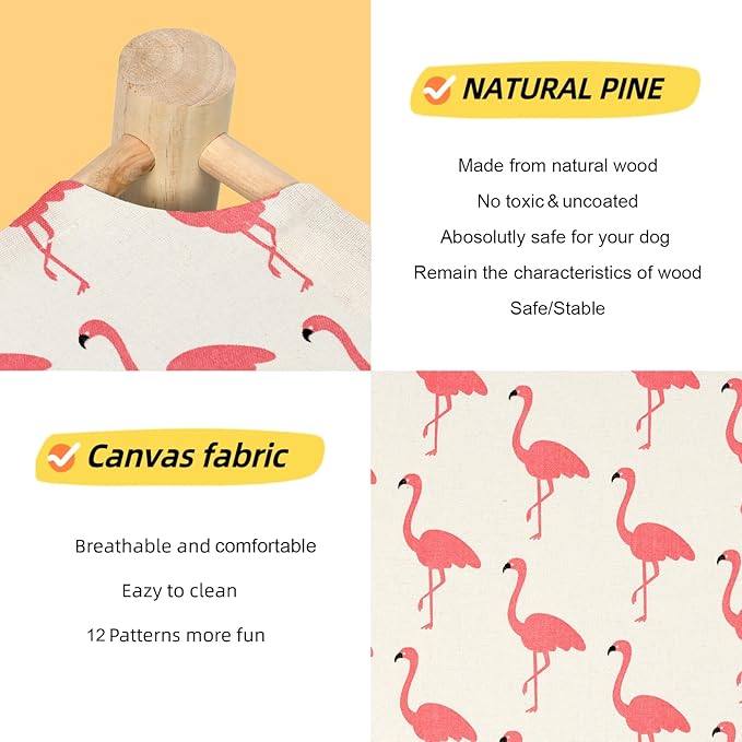 - MATERIAL: Patas Lague cat and dog hammock bed consists of linen fabric and natural wooden frame. The fabric is breathable enough to promote airflow and makes puppy feel cooler in hot weather. Sturdy frame provides more stable support, preventing the bed from shaking or tipping over.