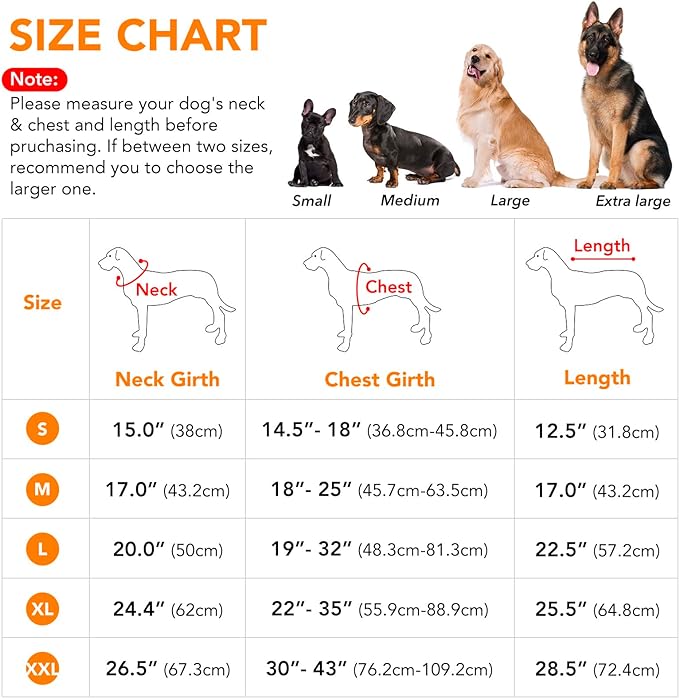 - 🌲ADJUSTABLE & 5 SIZES AVAILABLE - This fashion dog rain jacket uses comfortable adjustable belly and chest straps to make it convenient and enjoyable to put on and tack off, and it protects the dog’s abdomen better to prevent it from anxiety in bad weather. Four different sizes—S, M, L, and XL, 2XL make sure that you purchase suitable pet raincoats for your dogs.