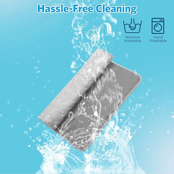 - 💓Safety & Easy Clean --- The safety of your dog is of utmost importance, and we've ensured that our product uses non-irritating fibers and no harmful chemicals. Without the need for water,electricity,or refrigeration,this self-cooling mat for dogs is easy to maintain and can be machine washed with ease.