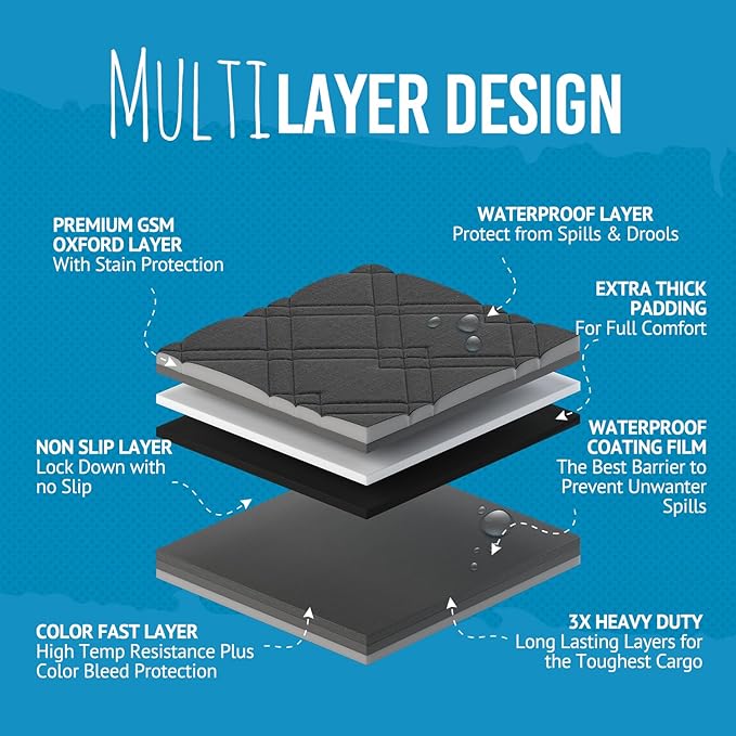 - WATERPROOF LAYERS: Ensure pet bathroom accidents or any spilled liquids from staining and absorbing into your seats. For a quick cleanup, you can wipe the cover down with a damp cloth, or throw it in the washing machine for bigger messes.