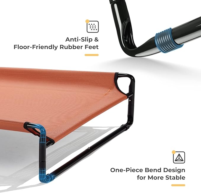 - Stay Cool Ever! Crafted of Textilene mesh fabric, the dog cot allows air to flow, keeping your pets cool while they relax in the heat. Also allow water or urine to go thru, no puddles formed. Besides, the teslin mesh features heat-resistance, sturdy, and breathability.