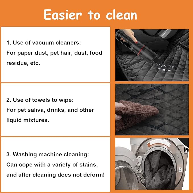 - 🐶 【Convenient and Durable】: It was very easy to fit this seat cover in cars and to install it in minutes. The material is very strong! Vacuumes up or wiped all easily. you can also throw it in the washing machine and all the dog hair actually comes off of it. and will not be deformed after cleaning.