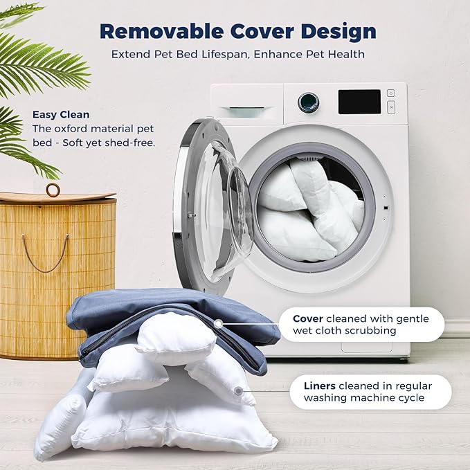 • Tips: Due to transportation, bed will arrives vacuum packed, you can gently pat the pet bed several times to make it fluffy, If still not fluffy enough, please put it in dryer with gentle mode under low temperature, helps to restore its shape
