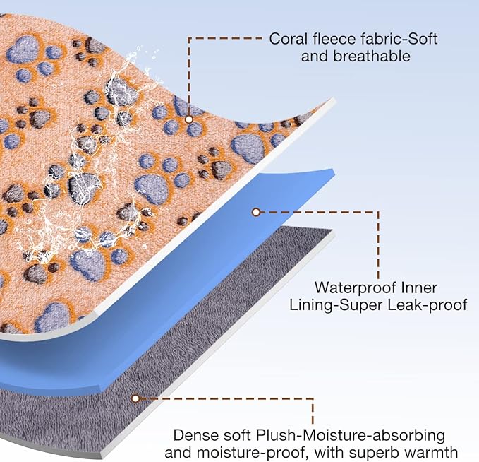- 🐾🐾🐾Machine Wash and Dry - The dog waterproof blanket is easy to wash and dry. When it gets dirty, you can throw it in the washer and dryer in a gentle setting. After cleaning, you have a waterproof blanket that looks like a brand new pet. you can get a blanket looking brand new again