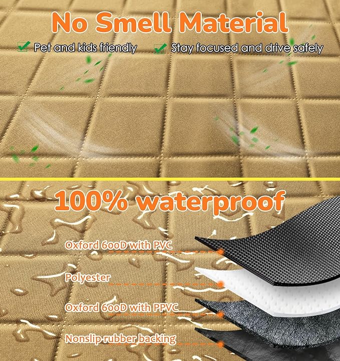 - No Smell Material: The dog seat cover without terrible smell is friendly for pets and children. In an enclosed car space, no terrible smell is also important to keep you focused and driving safely, something that others’ dog covers on the market ignore.