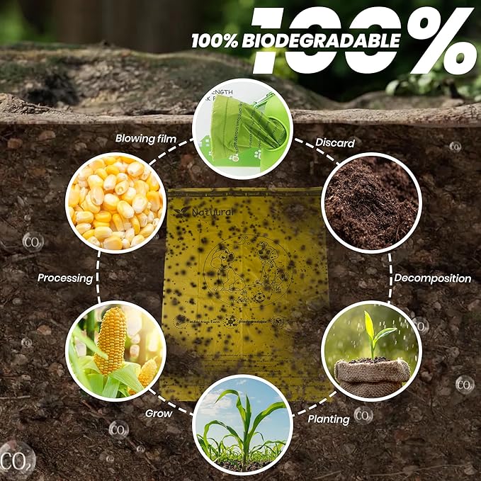 - 🌱 These biodegradable poop bags are designed from 100% plant-based materials, leakproof and tear resistant, they are the frist choice for our pet owners