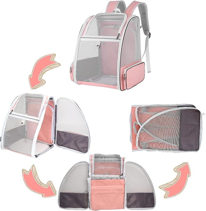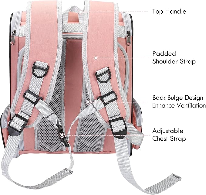 - Collapsible & Ergonomic: You can easily fold up your cat carrier backpacks and it will only take up very little space. With back bulge ventilation design, padded adjustable shoulder straps and chest buckle reduce the pressure on the shoulder, back and waist.