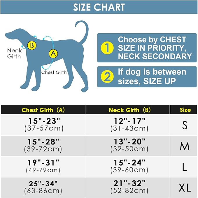 - ADJUSTABLE DOG HARNESS: This bright style dog harness has a detachable metal buckle on one side of the neck, which is convenient for dogs who are not easy to fit into the head. It can be opened and fastened from the neck. The chest part can be easily put on and off with two quick release buckles. There are 4 adjustable sliding straps on the neck and chest part to adjust the appropriate tightness. ▲Please ensure there is space for two fingers between the harness and the pet's body.
