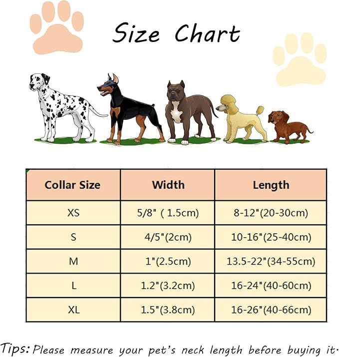 - <p><b>❤ADJUSTABLE SIZE:</b> Bowtie-L=2.75"(7cm) x 4.9"(12.5cm), Collar-L=1.2"(3.2cm) x 16"~24"(40cm~60cm). We strongly recommend that you measure your pet’s neck to ensure buy the right pet collar according the size chart.</p>