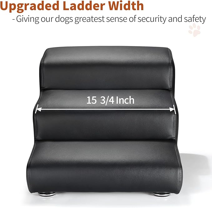 Senneny Black Faux Leather Dog Stairs 150 lbs, 3 Step