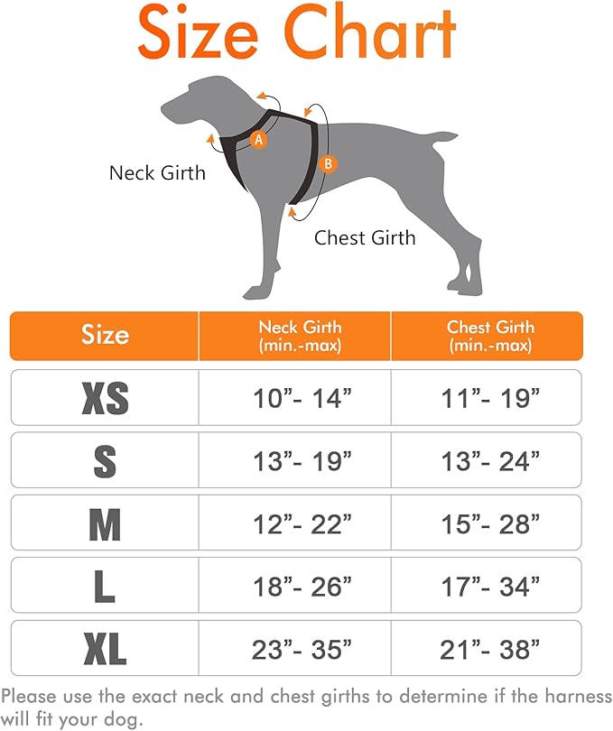- Fully Adjustable - This adjustable harness features 4 easy adjusting straps around the body. You can use its 2 neck straps and 2 chest straps to create a perfect fit for your dog with some room of growth. No worries about slipping out or choking