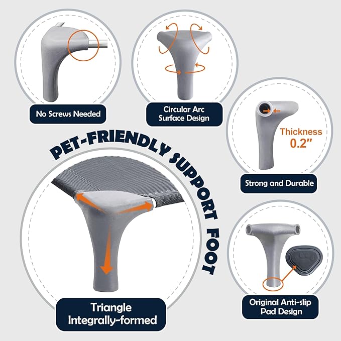 - Durable and Strong: The dog bed is composed of aluminum alloy bars, Teslin mesh fabric, and support feet with anti-slip bottom. The whole dog bed is sturdy and durable, but lightweight. The aluminum alloy bars are well supported and rust-resistant, and the Teslin mesh fabric is tear and wear resistant. The integrated support feet can provide better stability and a better sense of security for your pets.
