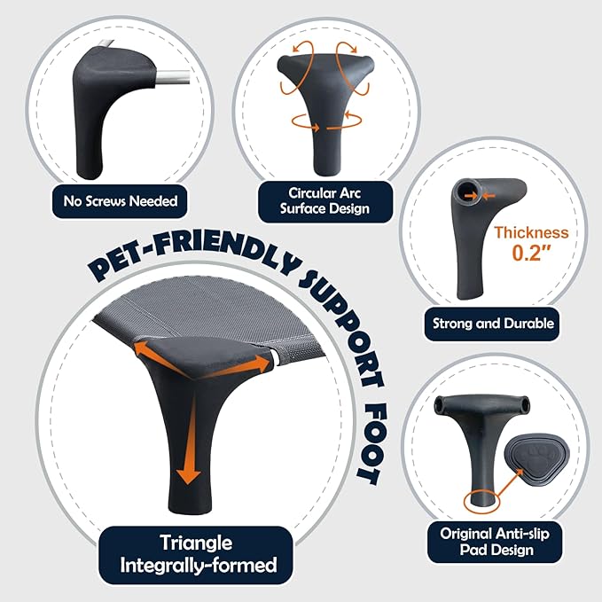 - Durable and Strong: The dog bed is composed of aluminum alloy bars, Teslin mesh fabric, and support feet with anti-slip bottom. The whole dog bed is sturdy and durable, but lightweight. The aluminum alloy bars are well supported and rust-resistant, and the Teslin mesh fabric is tear and wear resistant. The integrated support feet can provide better stability and a better sense of security for your pets.