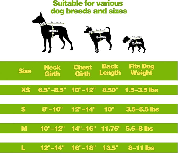 - Sizes: These shirts are available in different sizes to fit small to medium-sized dogs. Be sure to measure your dog's chest and neck girth before purchasing to ensure the best fit. The size chart can help guide you in choosing the right size for your pup.