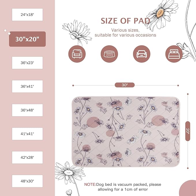 - 【Fashion and Non-slip】 Our daisy design makes this reusable pee pads for dogs very cute and makes your room more stylish. And the soft and comfortable puppy pee pads with anti-skid bottom can achieve a certain fixed effect.The bottom is waterproof and you can place it anywhere you want.