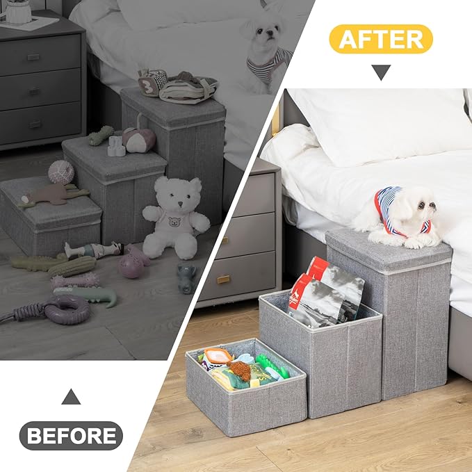 - 【Dog Stairs with Storage】Our dog stairs are suitable for sofas and beds (not suitable for high bed) to help your pet easily get on and off where they want to go and protect their joints.