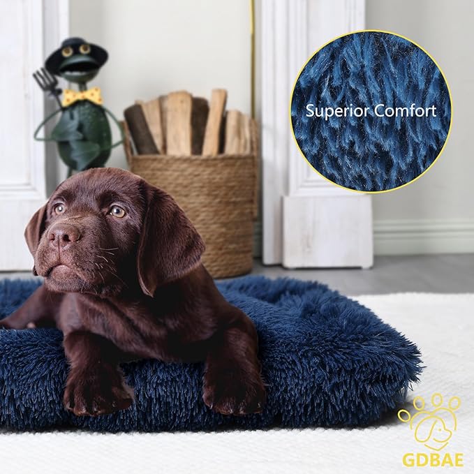 - Navy Blue Plush Dog Crate Bed Calming:The surface of the calming dog crate bed is made of soft plush luxury faux fur material that feels like pet mom's fur, super cozy and warm, helping your furry friend can calm down and sleep more comfortably.
