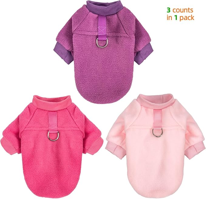 - Our small dog sweater clothes for dogs boy and girl are made of premium fabric, perfect to keep warmth in to help your puppy and kitten stay warm all day and night in chilly days. These small dog sweaters are soft, stretchy and comfortable. Easy take on and off, give more freedom for walking and jumping. Your puppy will like it. With plus feature of D-ring leash on back, you can take use of it for a short walk (not recommended if your dog pulls).