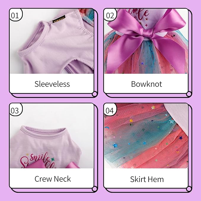 - 【WEARING EFFORTLESS】- Puppy clothes Crafted in 100% cotton mainly, provides softness and breathability. 4 Tulle layer Crafted in 100% polyester, fluffy and lightweight. With good -quality fabric details. Vest roundneck design makes this dress simple but elegant and classy.