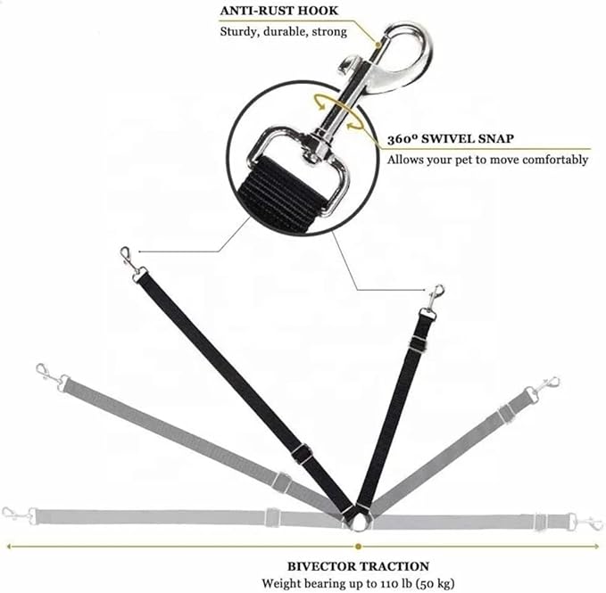 - Easy to Use:The length of the dog seat belt harness can be easily adjusted according to the size of the dog, which ensures that the dog can keep comfortably, no matter lying, standing or sitting, The dog seat belt buckle is compatible with majority of cars, you just need to insert the seat belt buckle into the car's buckle slot gently, and fix the other end on the dog's seat traction rope.