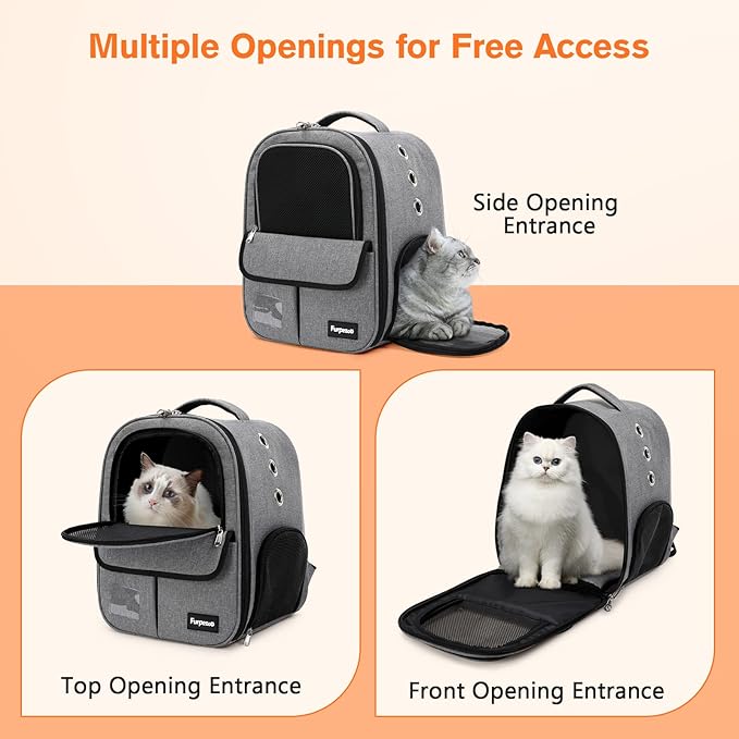 - 🐾【𝐍𝐄𝐖 𝐃𝐄𝐒𝐈𝐆𝐍】our pet backpack unique design of scientific division of visible area and hidden area:1,The clear mesh skylight is convenient for the owner to observe the status of the cat in time. 2,The height of the bottom cover provides enough security for cats, in order to avoid cat stress response for outdoor walk, hiking, travel etc.