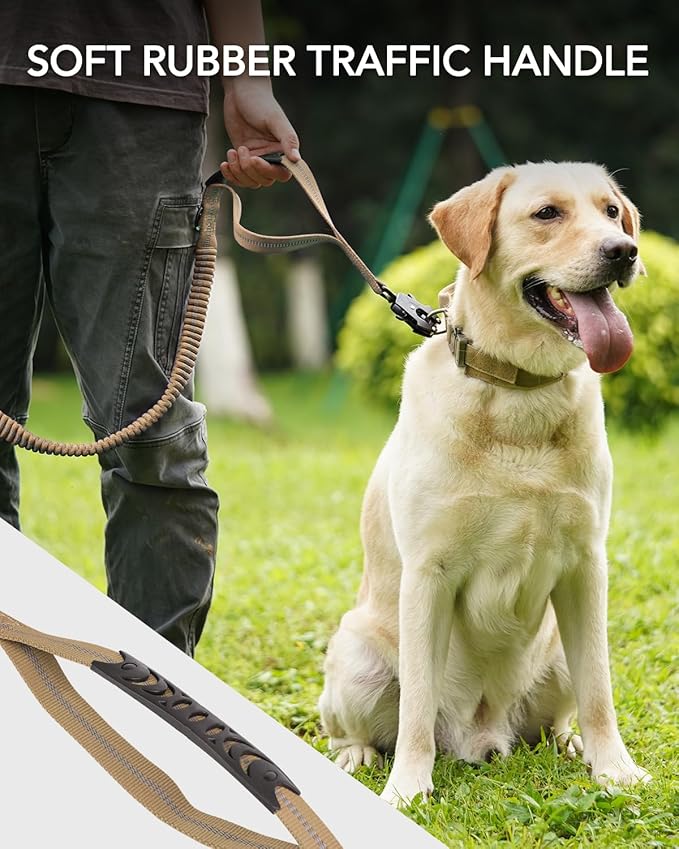 - Comfortable Double Handles: Our tactical dog leash is designed with 2 different comfortable handles. The Padded handle adding to the comfort at the end of leash for large dogs that pull is more suitable for your daily dog walking. The soft rubber traffic handle is more suitable for busy sidewalks, bike lanes, and crowded areas in order to close control of your dog