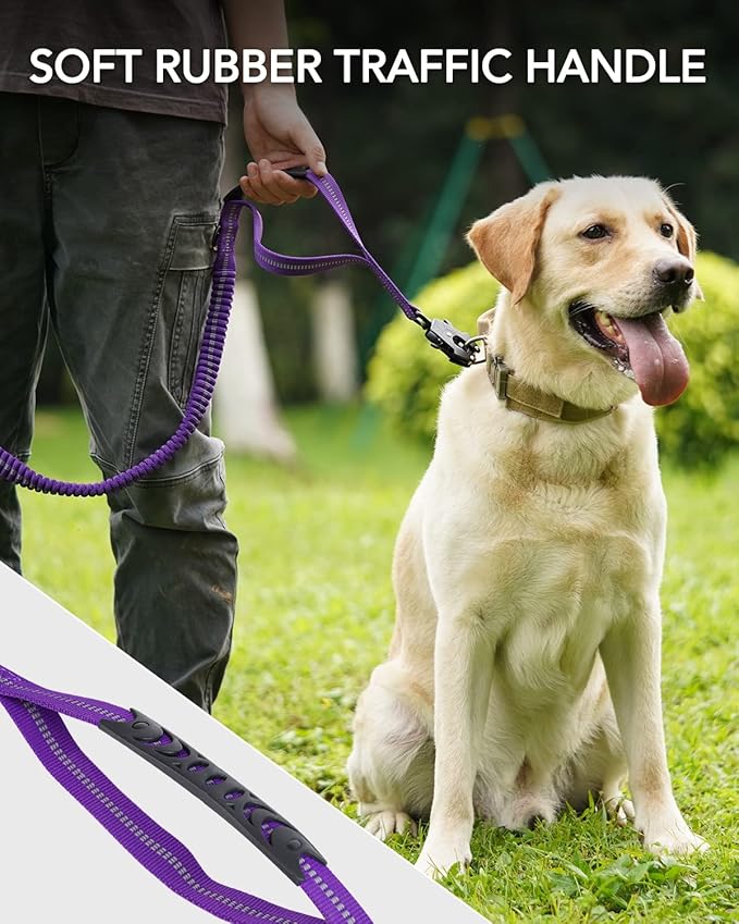 - Comfortable Double Handles: Our tactical dog leash is designed with 2 different comfortable handles. The Padded handle adding to the comfort at the end of leash for large dogs that pull is more suitable for your daily dog walking. The soft rubber traffic handle is more suitable for busy sidewalks, bike lanes, and crowded areas in order to close control of your dog