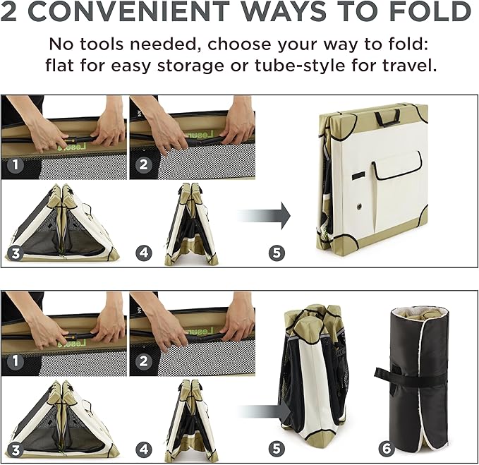 - Easy Assembly, Storage, & Maintenance: The convenient and simple design allows for quick assembly within 2 minutes. The crate can be folded into two different ways, catering to various indoor and outdoor settings. It features a water resistant design with waterproof fabric, making it easy to clean with just a damp cloth. The removable and machine washable mat simplifies care.