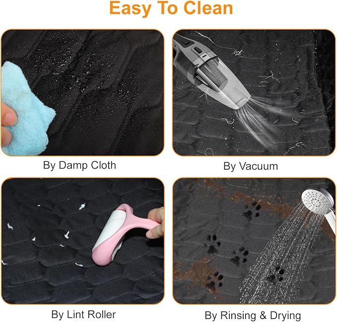 - 【 Easy To Install & Clean 】Adjust snap buckles on headrests and fix seat anchors,the dog back seat cover can be easily installed.Wipe with a damp towel or use vacuum cleaner when pets' fur or mud are attached on the surface to keep your car clean.